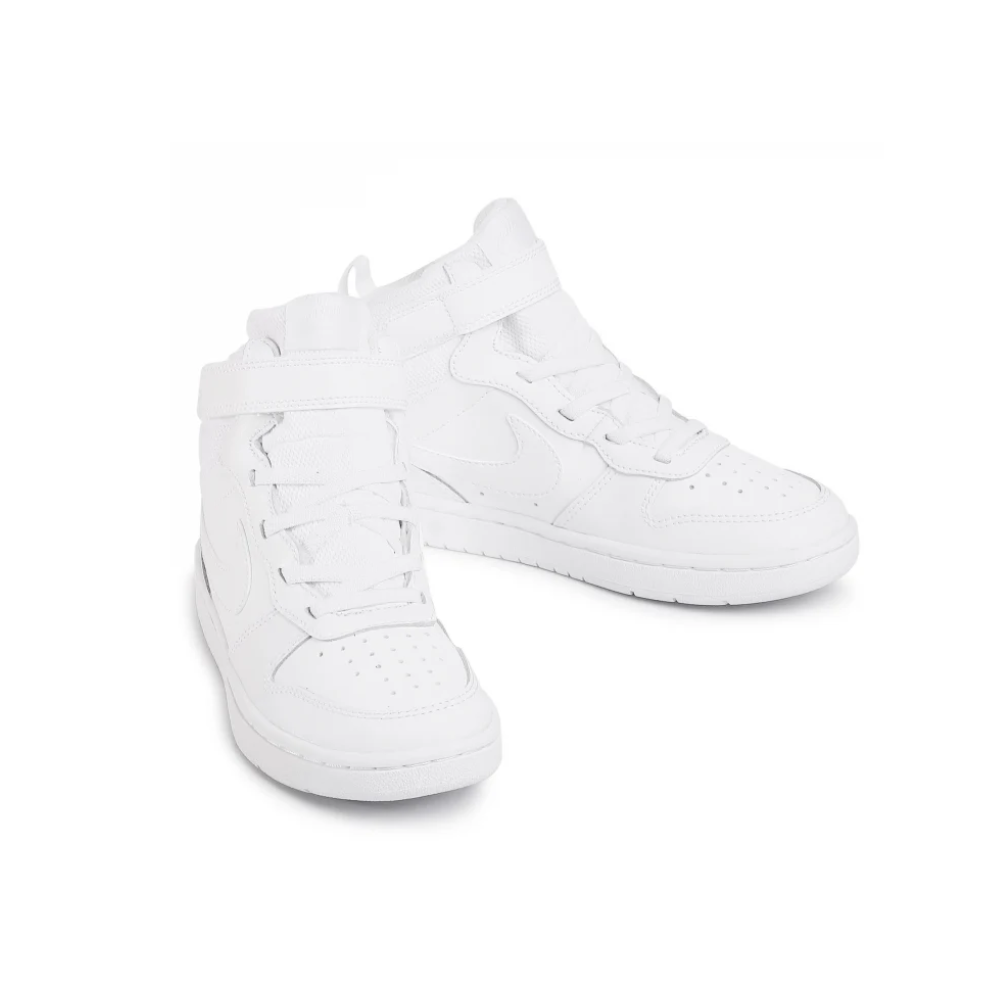 **Nike Court Borough Mid 2** **Încălțăminte pentru Copii Mici** **CONFORT DE ALL-STAR.** Cu Nike Court Borough Mid 2, micuțul tău va arăta și se va simți ca o vedetă chiar și în afara terenului. Designul clasic de tip mid-top include piele durabilă pentru un aspect premium, iar cureaua cu închidere tip velcro face încălțarea și descălțarea foarte ușoară. **Caracteristici principale:** - **Construcție rezistentă:** Pielea oferă un aspect clasic, durabil și ușor de curățat. - **Încălțare rapidă:** Șireturile elastice și cureaua tip velcro facilitează încălțarea și descălțarea. - **Tracțiune pentru întreaga zi:** Talpa din cauciuc pe toată lungimea asigură tracțiune durabilă. Designul include și un mesaj „all-day play” (joacă pe tot parcursul zilei). **Mai multe detalii:** - Construcție tip cupsole pentru un aspect clasic și confort de durată. - Căptușeală suplimentară în jurul gleznei și limbii pentru confort sporit.